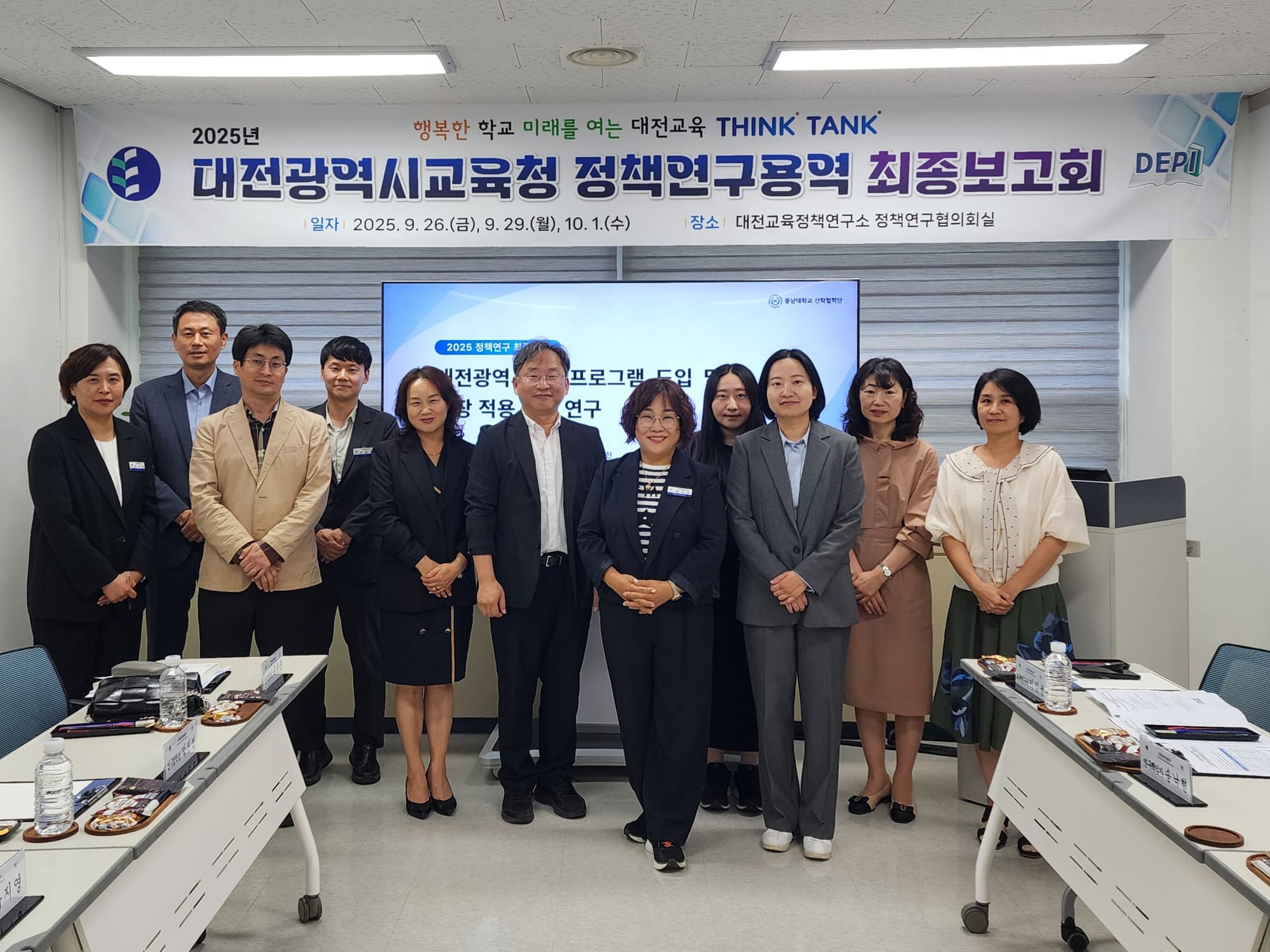 이번 최종보고회는 교육정책 연구의 외부 전문가로 대학교수와 대전교육정책연구 지원단이 심의위원으로 참여하여 사전 서면심의와 당일 대면심의로 진행됐다.