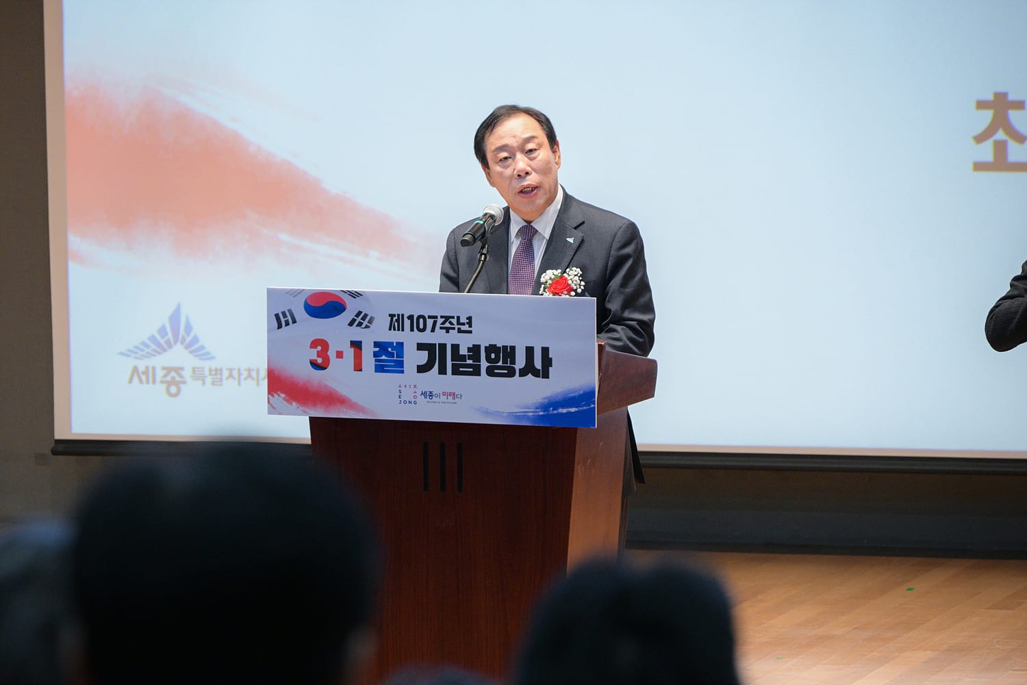 최민호 시장, 제107주년 3·1절 기념사 역경 속 미래전략수도 다짐 | 행정·재정특례 완수 및 대통령실·국회 완전 이전 등 의지 밝혀