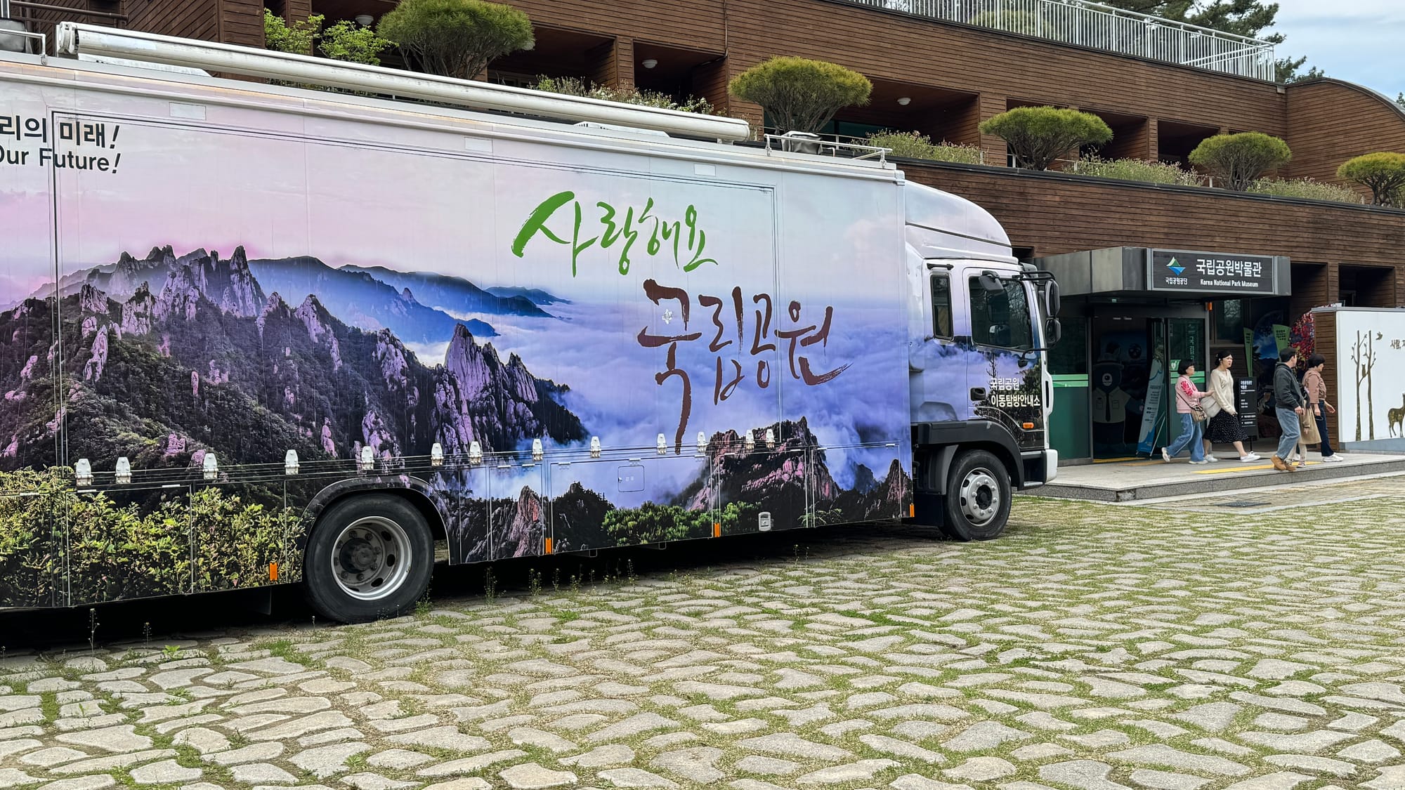 국립공원공단도 봄 나들이 인파에 맞춰 이동탐방안내소를 운영하며 탐방객 맞이에 나섰다. '사랑해요 국립공원'이라는 문구를 래핑한 대형 차량이 박물관 앞에 자리를 잡고, 탐방 정보와 안전 안내를 제공했다.
