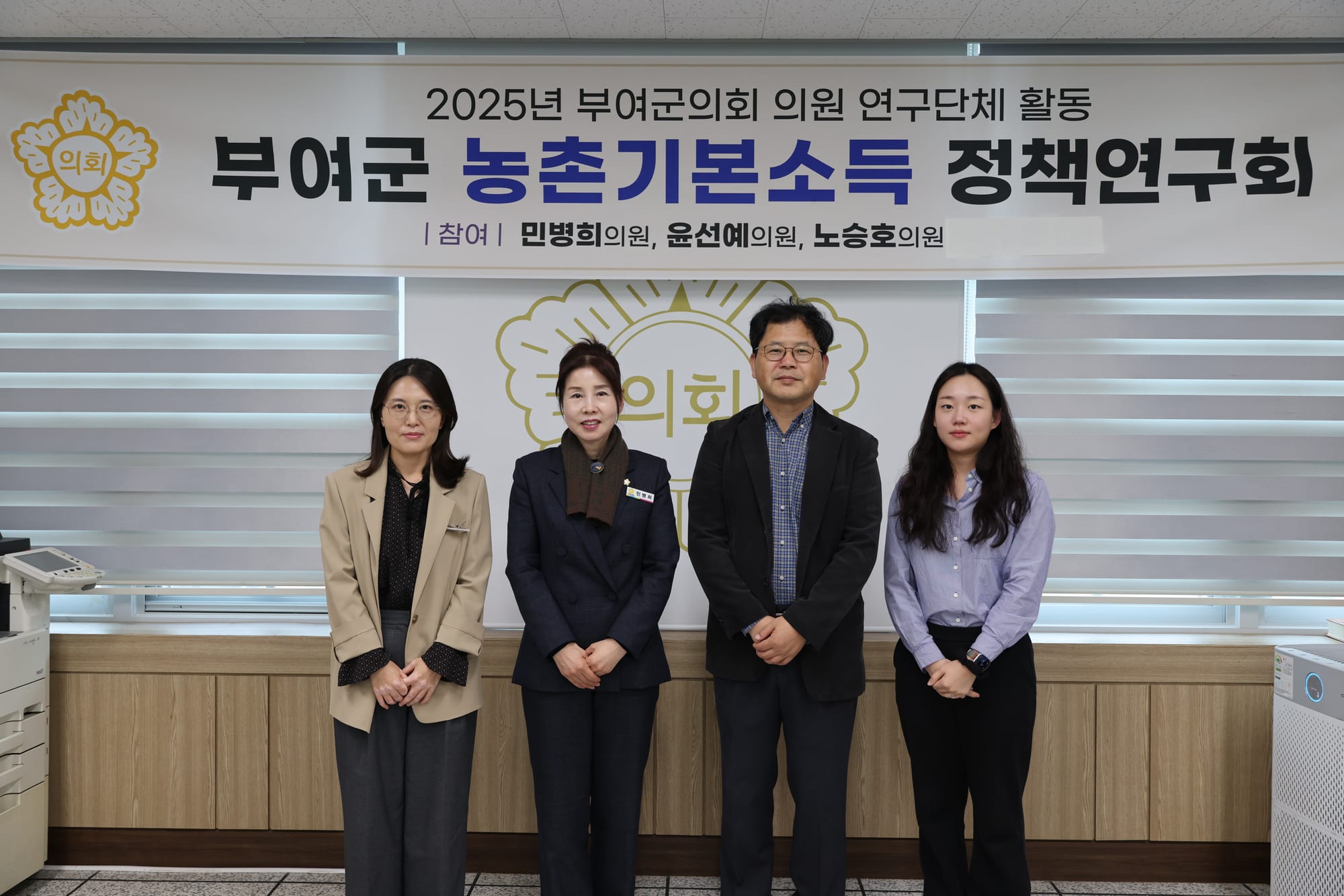 민병희 의원을 대표의원으로, 윤선예 의원과 노승호 의원이 참여한 정책연구회는 농촌소멸 위기에 대응하고 마을공동체 회복과 지역 순환 경제 구축을 위한 대안으로 ‘부여형 농촌기본소득 정책모델 설계’를 목표로 약 3개월간 연구를 진행해 왔다.