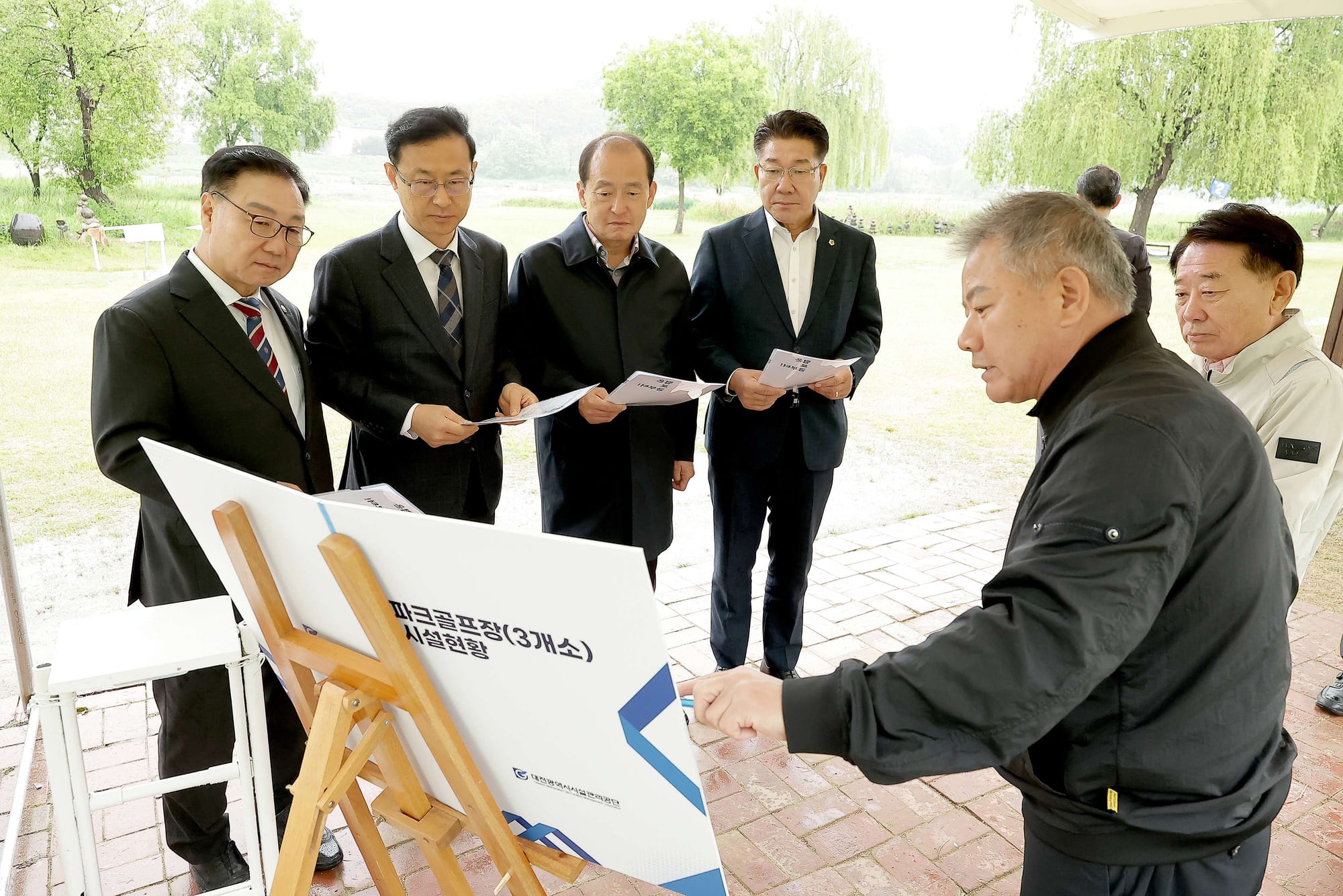 갑천파크골프장 2구장과 을미기공원 파크골프장 방문, 현장 점검 및 관계자 간담회
