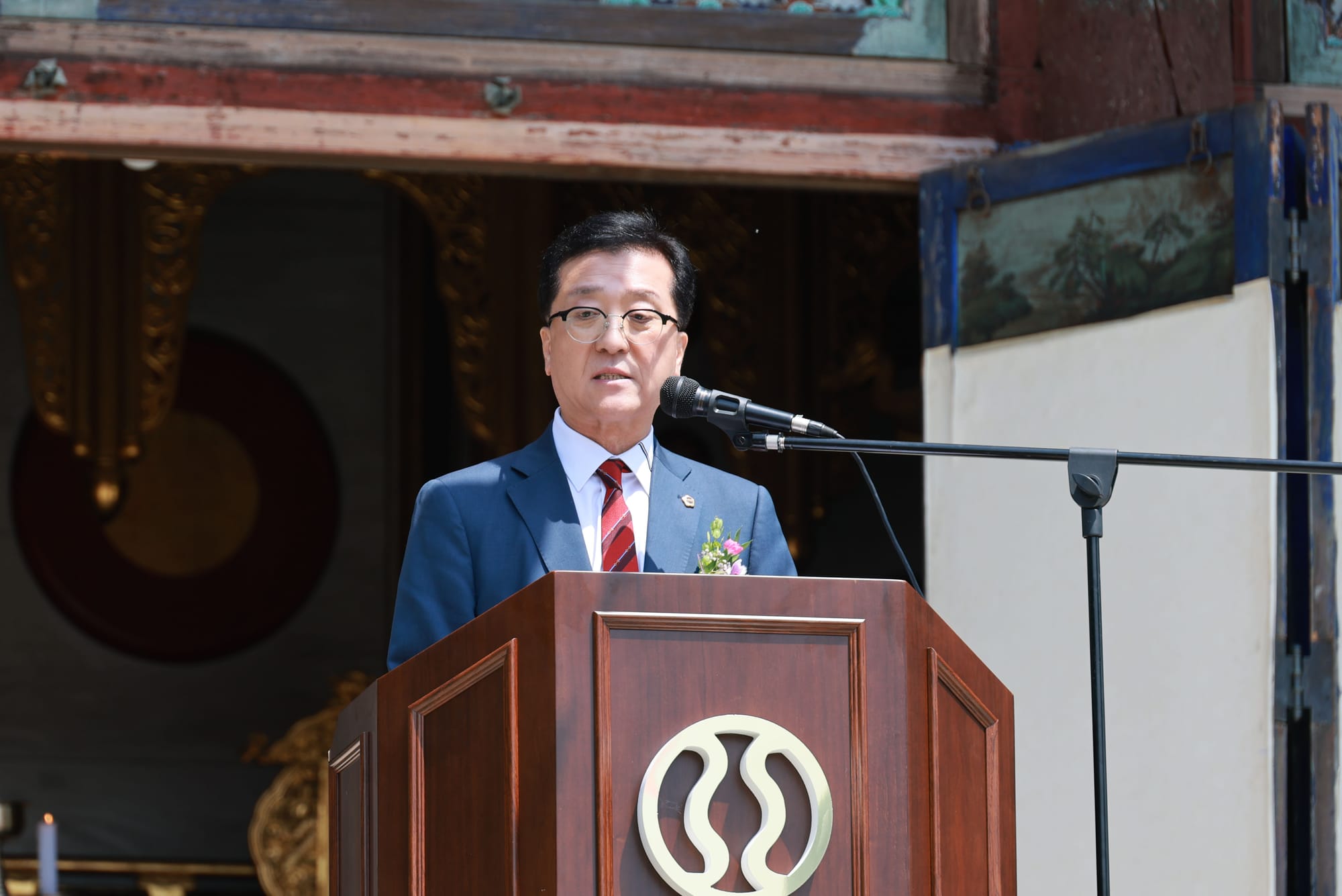 [SNS 타임즈] 대전시의회 조원휘 의장은 12일 수운교 도솔천(유성구 추목동)에서 개최된 수운천사 탄강 제204주년 기념 봉축법회에 참석해 대전시민의 건강과 편안을 기원했다.