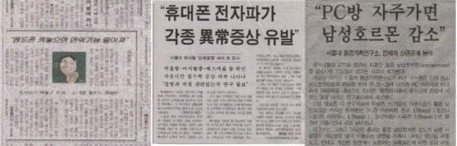 또, 2001. 5.24일자 중앙일보 기사에는서울대 의대 팀의 전자파의 인체 영향에 관한 국내 첫 조사에서 전자파가 귀 울림이나 어지럼증, 메스꺼움 등을 일으키는 요인이라는 것을 확인하였다는 기사가 실리기도 했다.