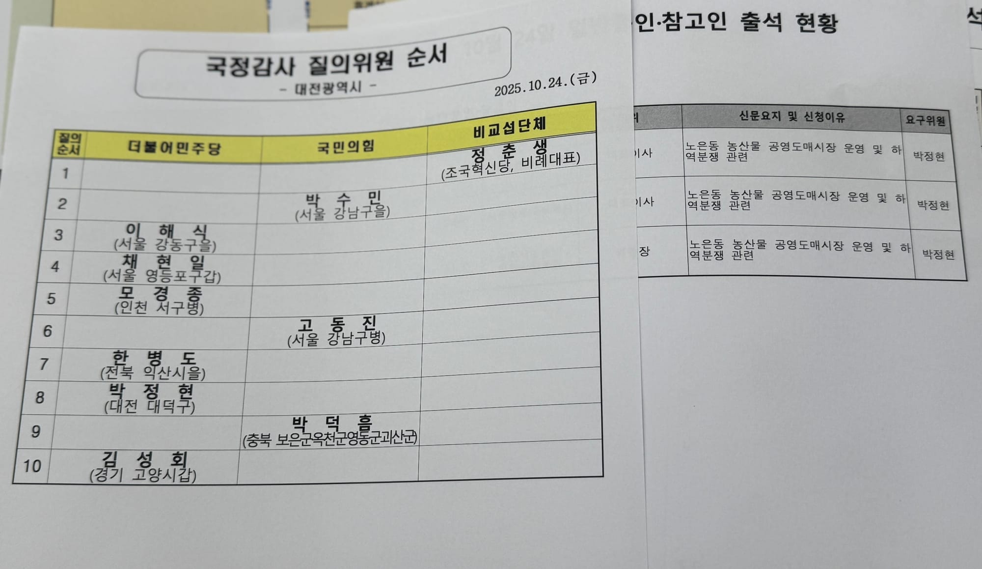 10.24일 2025년 국회 행안위 대전광역시 국정감사 현장 포토 스케치