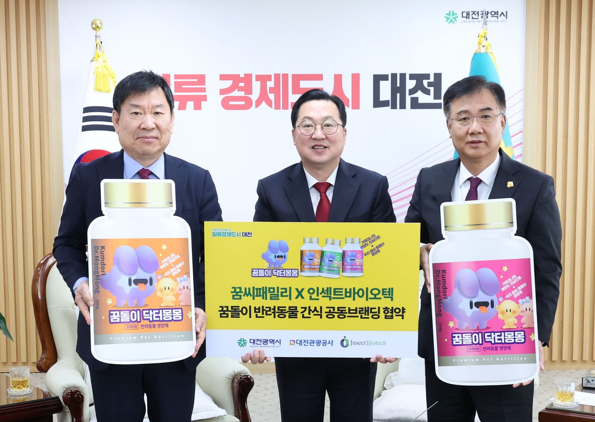 이장우 대전시장은 “대전은 캐릭터의 도시를 넘어 연구와 일상이 만나는 도시”라며, “대전의 바이오기업과 함께하는 반려동물 간식은 대전다움의 새로운 방식이 될 것”이라고 말했다.