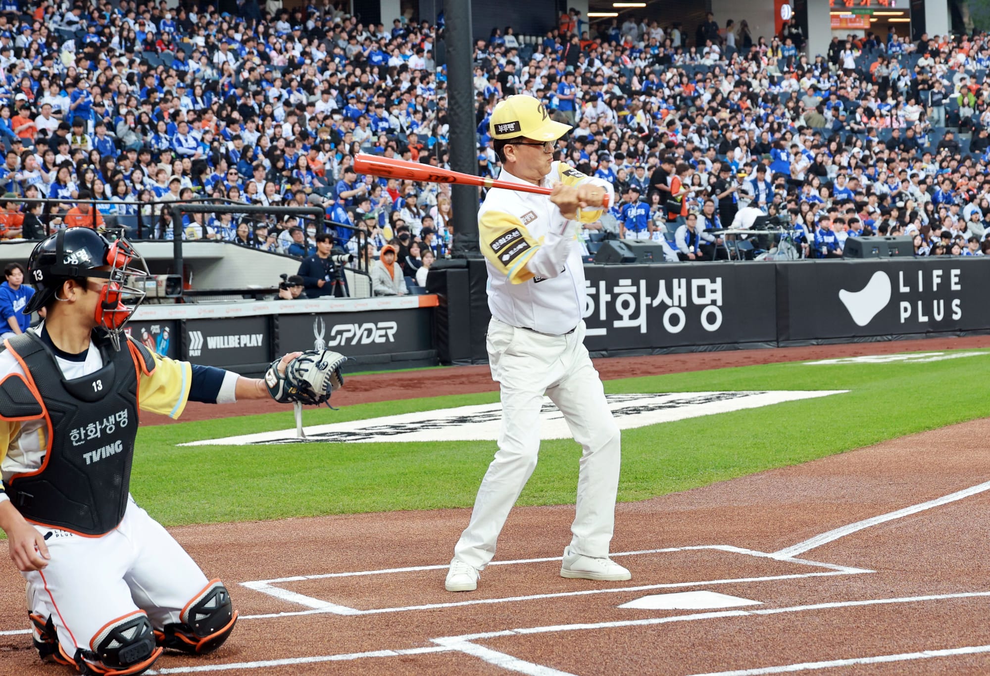 [SNS 타임즈] 조원휘 대전시의회 의장과 이장우 대전시장이 7일 대전 한화생명 볼파크에서 열린 한화와 삼성 경기에 앞서 각각 시타와 시구를 선보이며 새 야구장 개장을 축하했다.