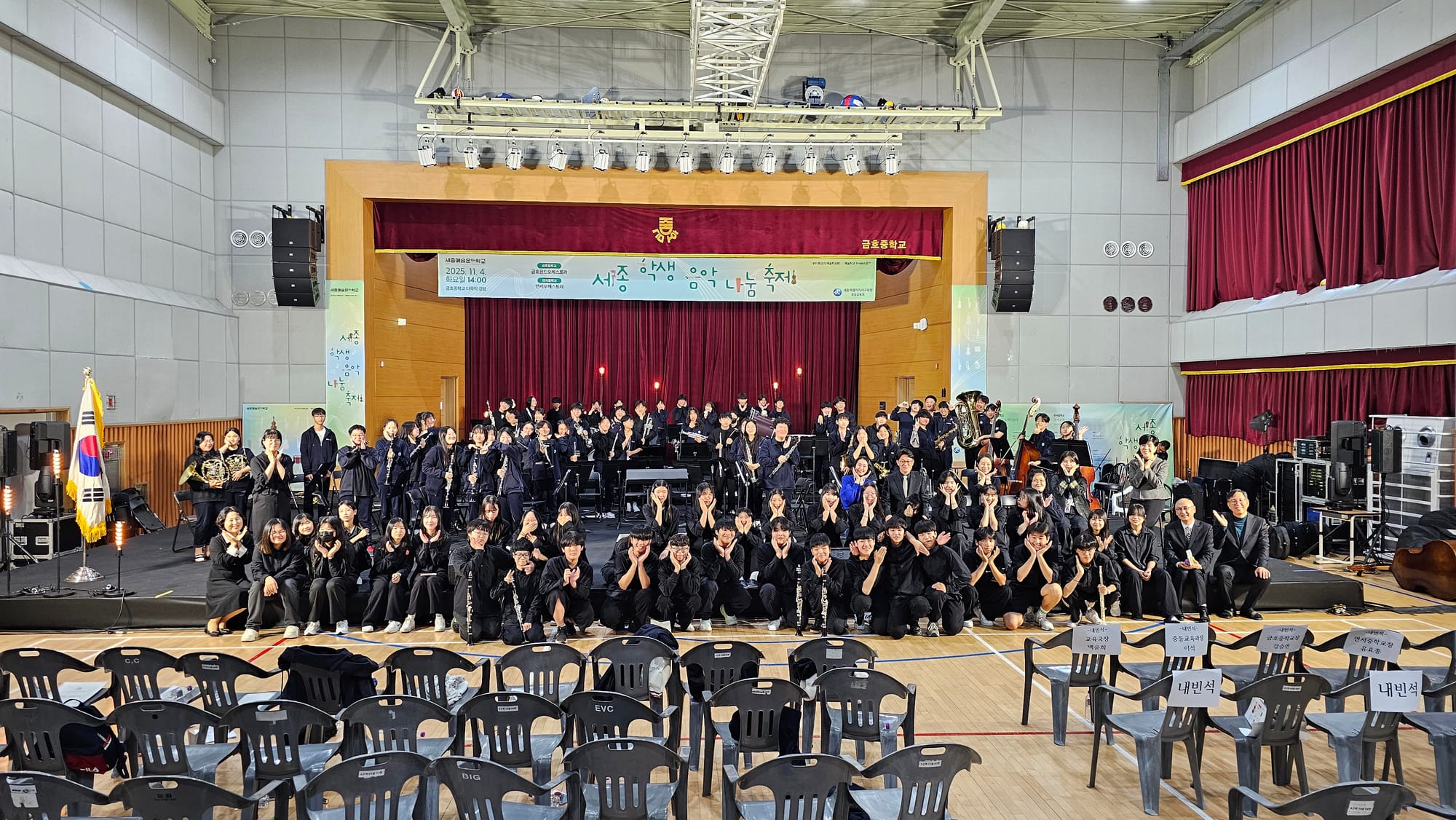 [SNS 타임즈] 세종시교육청은 11.4일 금호중학교 다목적강당에서 금호중학교의 ‘금호윈드오케스트라’(지도교사 조현영, 지휘자 연춘흠)와 연서중학교(교장 유효종)의 ‘연서오케스트라’(지도교사 이은정, 지휘자 김채연)가 함께 만드는 ‘2025 세종예술온(ON)학교’ 예술학교 ‘세종 학생 음악 나눔 축제’를 성황리에 마쳤다.