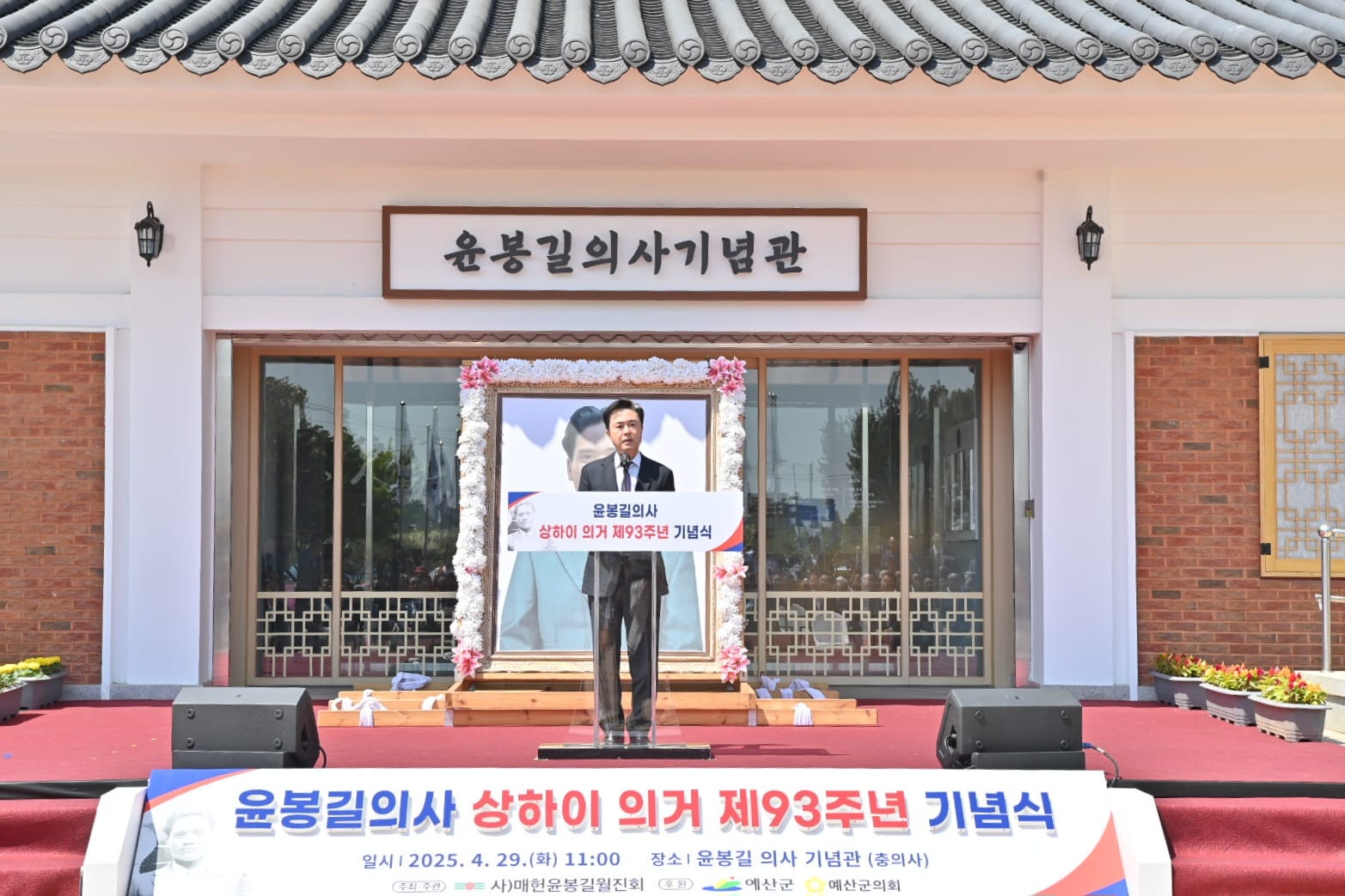 김 지사는 29일 예산 충의사에서 열린 ‘매헌 윤봉길 의사 상해 의거 제93주년 기념제 및 기념식’에 참석해 “한 사람의 용기가 역사를 바꾸고 한 사람의 결단이 민족의 자존심을 일깨웠다”며 윤 의사에 경의를 표했다.