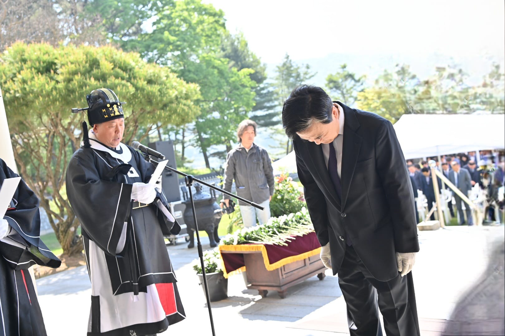 김 지사를 비롯해 예산군수, 도·군의원, 관계기관·단체장, 도민 등 300여명이 참석한 가운데, 이날 행사는 헌관 재배, 초헌례, 축문 낭독, 아헌례, 종헌례, 헌화·분향, 추모가 제창, 유공자 표창 등의 순으로 진행됐다.