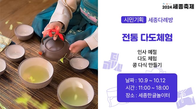 고려대학교 학회 ‘우아한글’팀이 준비한 ‘우아의 한글투어’는 홀로그램으로 즐기는 만 원권 속 이야기와 음양오행 키링 만들기 체험을 마련했고, 마지막으로 다도 문화를 체험하고 차 예절을 배우는 ‘전통 다도체험’도 준비돼 있다.