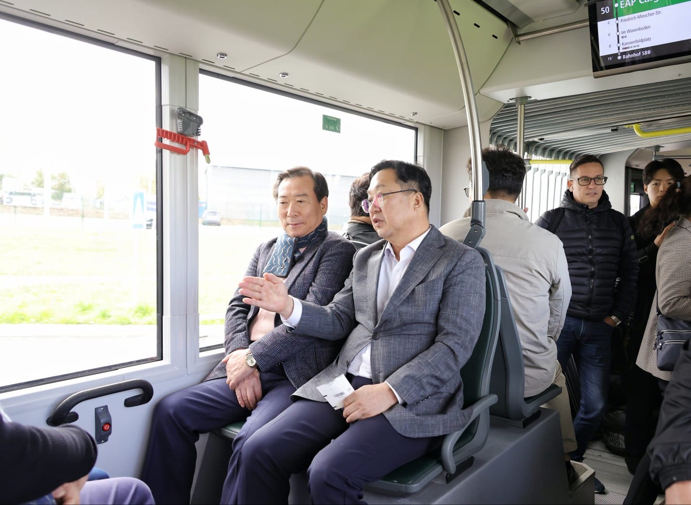 [SNS 타임즈] 이장우 대전시장은 해외공무출장 마지막 날인 5일 스위스 바젤에서 신교통수단(무궤도 트램)을 시승했다.